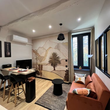 Le propriétaire étant absent, il m'a confié l'organisation des travaux avec les artisans ainsi que la recherche des éléments de décoration jusqu'à la touche finale et a été comblé de voir ce que l'on pouvait réaliser dans un aussi petit espace comme éléments pratiques et luxueux à la fois
